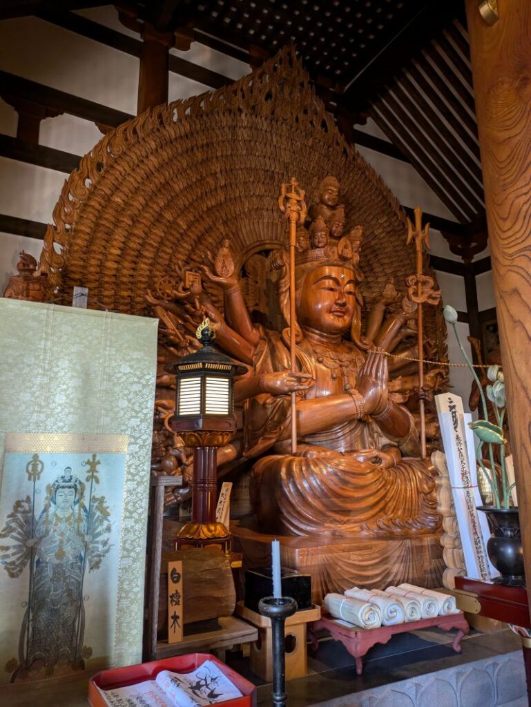 32番 観音正寺は滋賀県近江八幡市にあり、白檀の原木で造像された千手観世音菩薩坐像が納められています。観音様の穏やかな表情がとても印象的で撮影も可能でした。(きぬがさやま)の山頂にあり晴れた日には琵琶湖を一望できます。