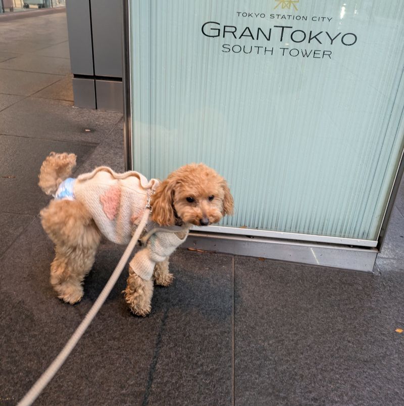 東京に到着後、人混みの渋谷や虎ノ門を移動する時に大活躍!密着感があるので、わんこも落ち着いてスリングに潜り込んでいました。両手が空くのとしっかり密着するので、私の腰への負担も少し楽に(笑)。また、スリングだけではなく鞄のようにも持てるので手に掛けることもできます。